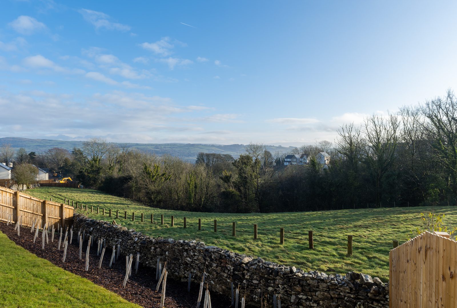 - Vertical timber fencing or natural boundary